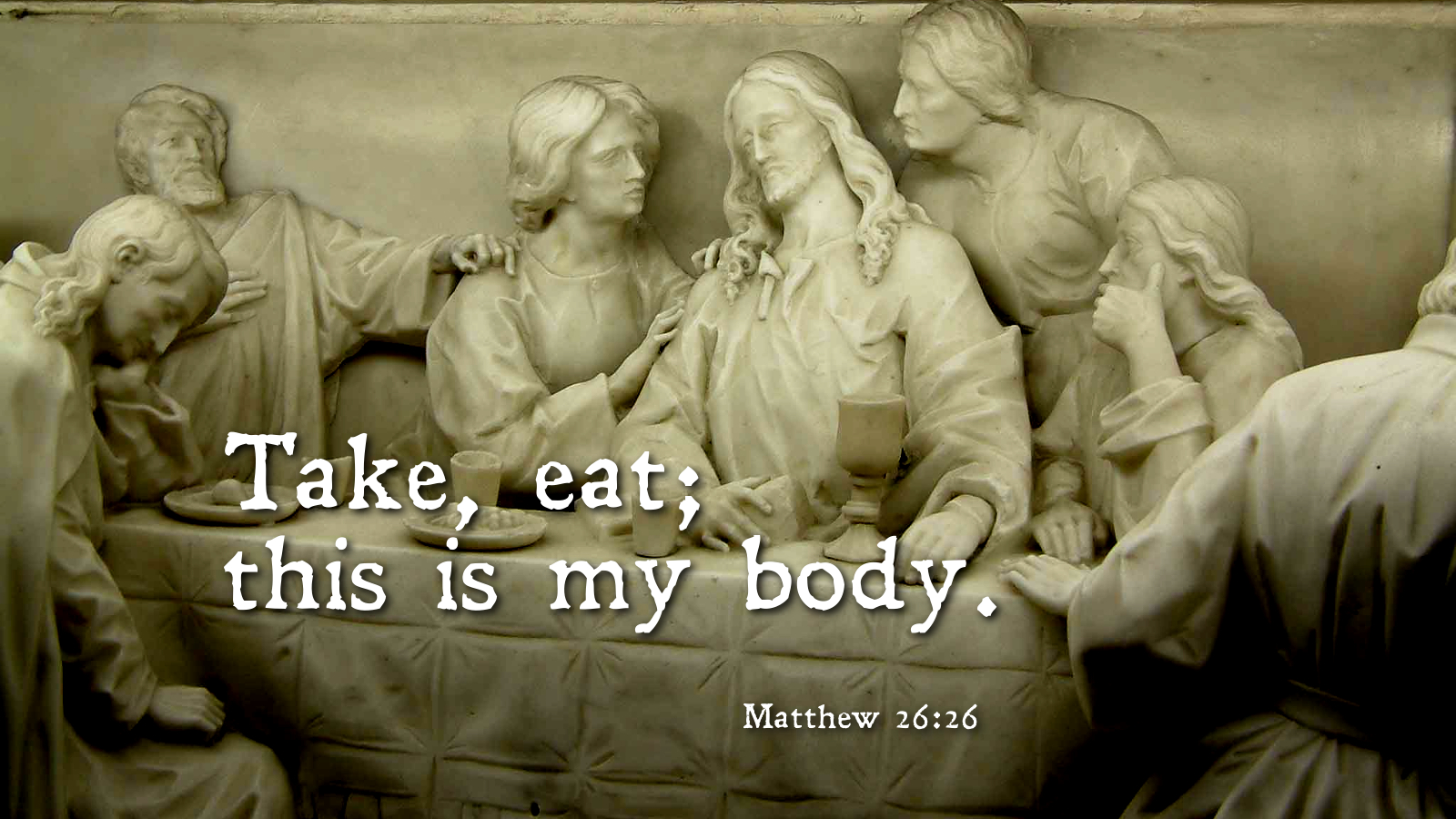 Burdened by the weight of our sin, we, like the twelve, also take our place at the table. We stretch out our empty sinful hands filled only with the shortcomings of human life. In his compassion and mercy, God lifts the burden of sin from our hands, replacing it with life, love and grace. Eating this bread, which is the body of Christ and drinking this wine, which is the new covenant in his blood, we receive the tender mercies of our Lord.